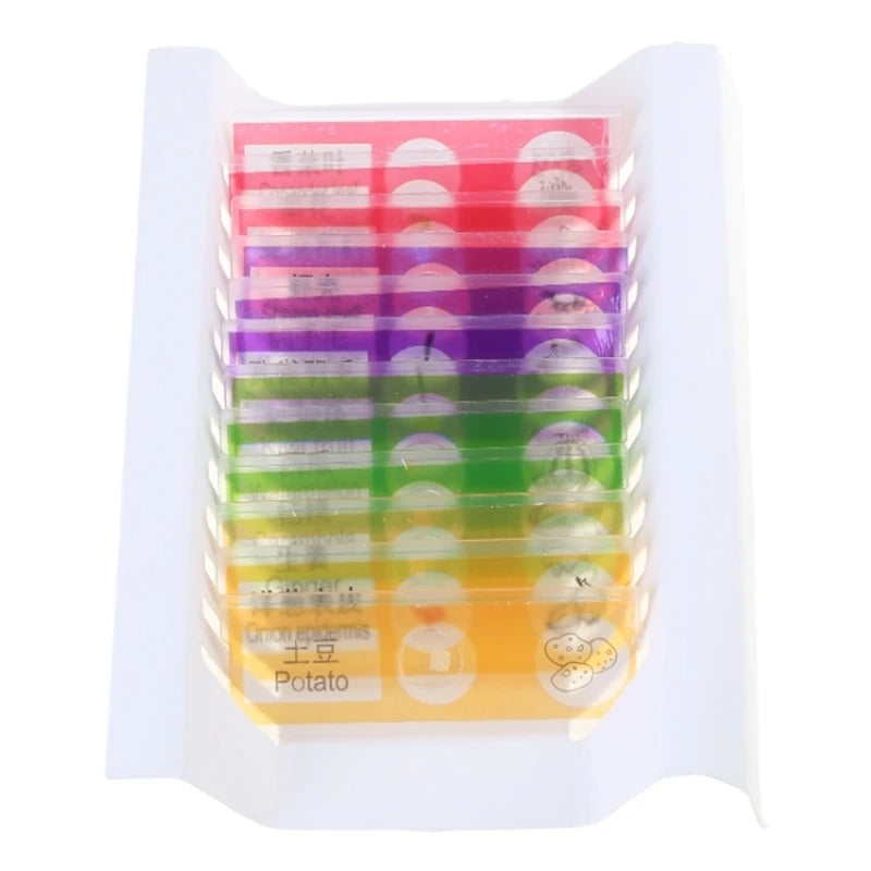 Dans ces lamelles vous retrouverez une antenne papillon, une patte d'abeille, une aile de sauterelle, un échantillon de bambou, du pollen de lys, une racine de carotte, de la tige de maïs, de l’écaille de poisson rouge, de la plume de pigeon et des poils de chat.